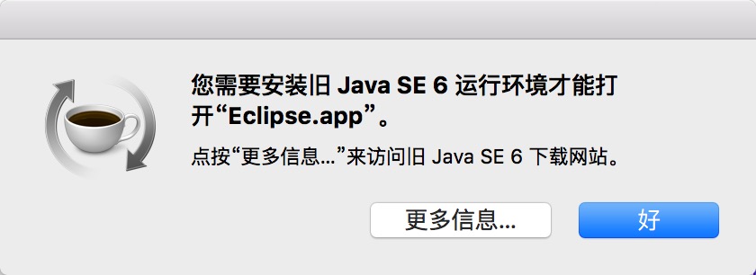 如何解决 Mac OS X 下安装的是 Java 1.8,运行 Eclipse 时提示「您需要安装旧 Java SE 6 运行环境才能打开「Eclipse.app」。」的问题?